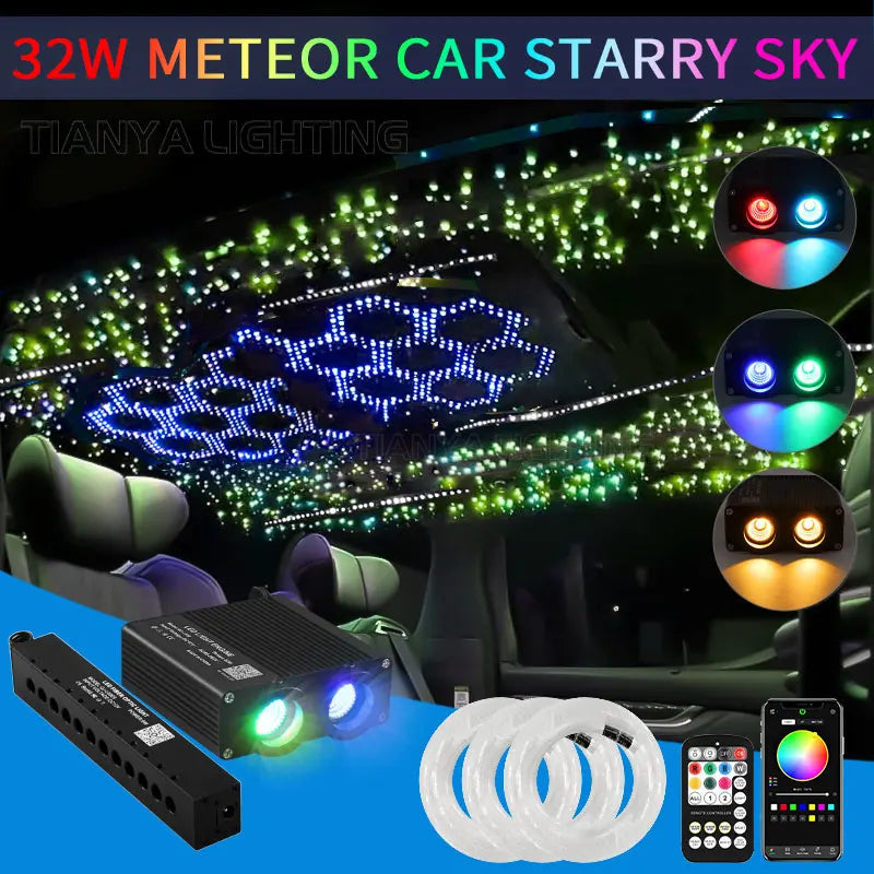 Ce kit d’éclairage fibre optique 32 W avec effet ciel étoilé et météores permet de créer une ambiance immersive, élégante et spectaculaire, inspirée des plafonds “starry sky” des véhicules de prestige.